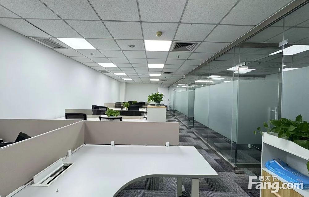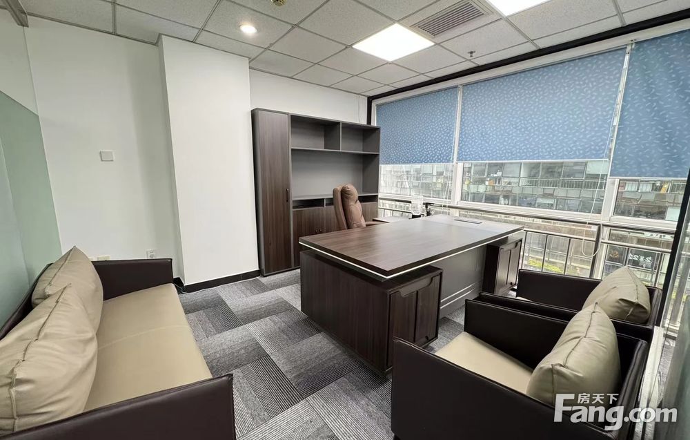 业主直租真实图片老板桌16组工位8人会议桌视频会议电视打印机