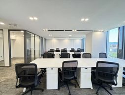 4、【装修现状】:精装服务:选址、装修、财税、开票、绿植、保洁等!简约现代式装修、家具齐全、配套设施齐全。