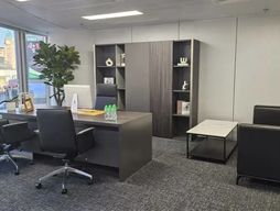 【室内格局】:大气前台展示区、3间独立办公室、1间会议室、开放工位区约16人